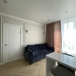 Den strandnära 45 m² stora lägenheten ligger i distriktet Primorsky, inom 2 km från Arboretum Peremohy. Gästerna kan besöka Pusjkinmuseet ungefär 15 minuters bilfärd bort.